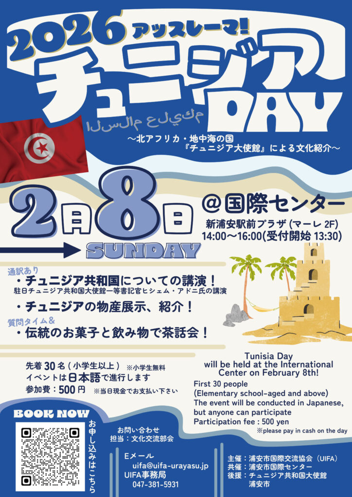 後援:チュニジア共和国大使館、浦安市