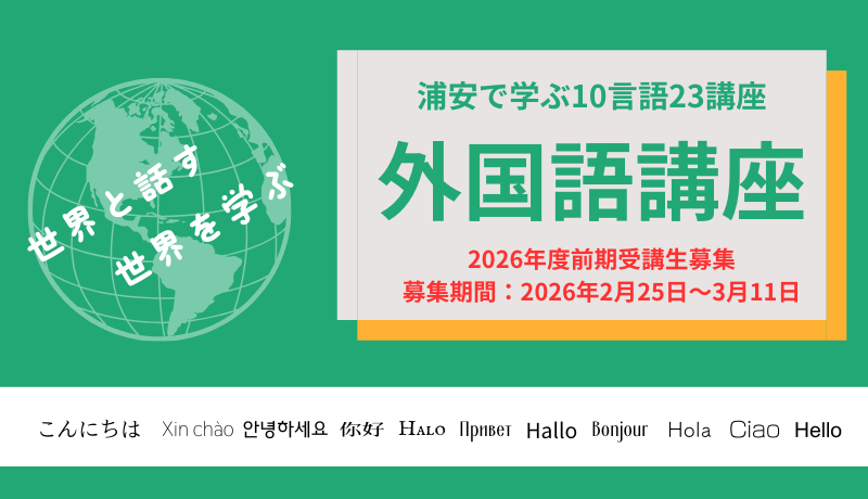 浦安市国際交流協会(UIFA)の外国語講座では、2026年度前期(2026年4月~2026年9月)からの受講生の募集を行います。