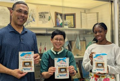 今回同校が「浦安市と米国・オーランド市の姉妹都市」の自主学習を進めて来たことから、前段に「姉妹都市の経緯」を分りやすく説明しました。その流れから今回3名の説明者は、米国出身2名、インドネシア出身1名となりました。
